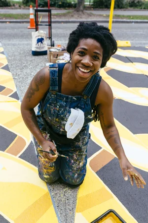 There's like different types of things that come up. I think you get what I mean when I say that. And it's just like so even when you conquer one thing, you keep going, and there's another thing, you're like, Okay, I have to overcome this and you keep going, you like, whoa, okay, past that test, okay. Next one, you just keep going and keep going and keep going. And what's amazing is I feel stronger and stronger, with each moment, but I think I just need to continue just to check in, you know, so this is just like a mental check in with myself. And the person who is my example is Beyoncé, because she's just like everything to me. Just the shit that the Queen has been through. And it's like, when you on that level of a global stage, so many opinions and so much feedback that you're dealing with, and how hard it can be to create when there's so many people who have expectations about what your creative process should look like, or what you have to do, like just so many different things that for her to still be showing up in her career inspires me as an artist, because I just be thinking: Okay, so what about when I want to switch it up and maybe paint something different and do some more abstract work or play around with, you know, nature elements, or just like so many different things? I just never want to feel like I'm trapped into a box, you know?
