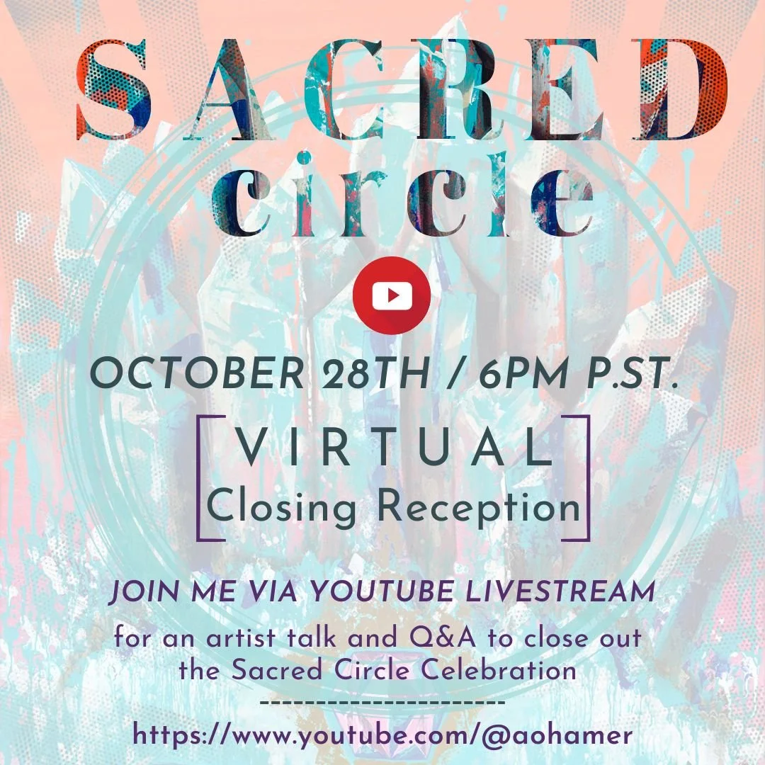 “I'm doing a virtual live stream at that time on YouTube. It will be available to the public. Y'all hop in chat when we ask for your questions, and let's vibe out. I'm going to do an artist talk and a presentation talking about the inspiration behind behind those specific paintings. I recently shared on YouTube, the inspiration video behind the Zodiac paintings, and all of the influences that brought that collection to life. During this artist talk, I'm gonna talk about the paintings that are specifically up at the Sacred Circle Celebration. I'm going to be doing just a regular artist talk as well as answering your questions during the Q&A, and sharing more about my journey as a full time artists and how I got to where I am here today. So if you're interested in that story, or if you got questions, please join me October 28. I think we are going to have a whole lot of fun.”