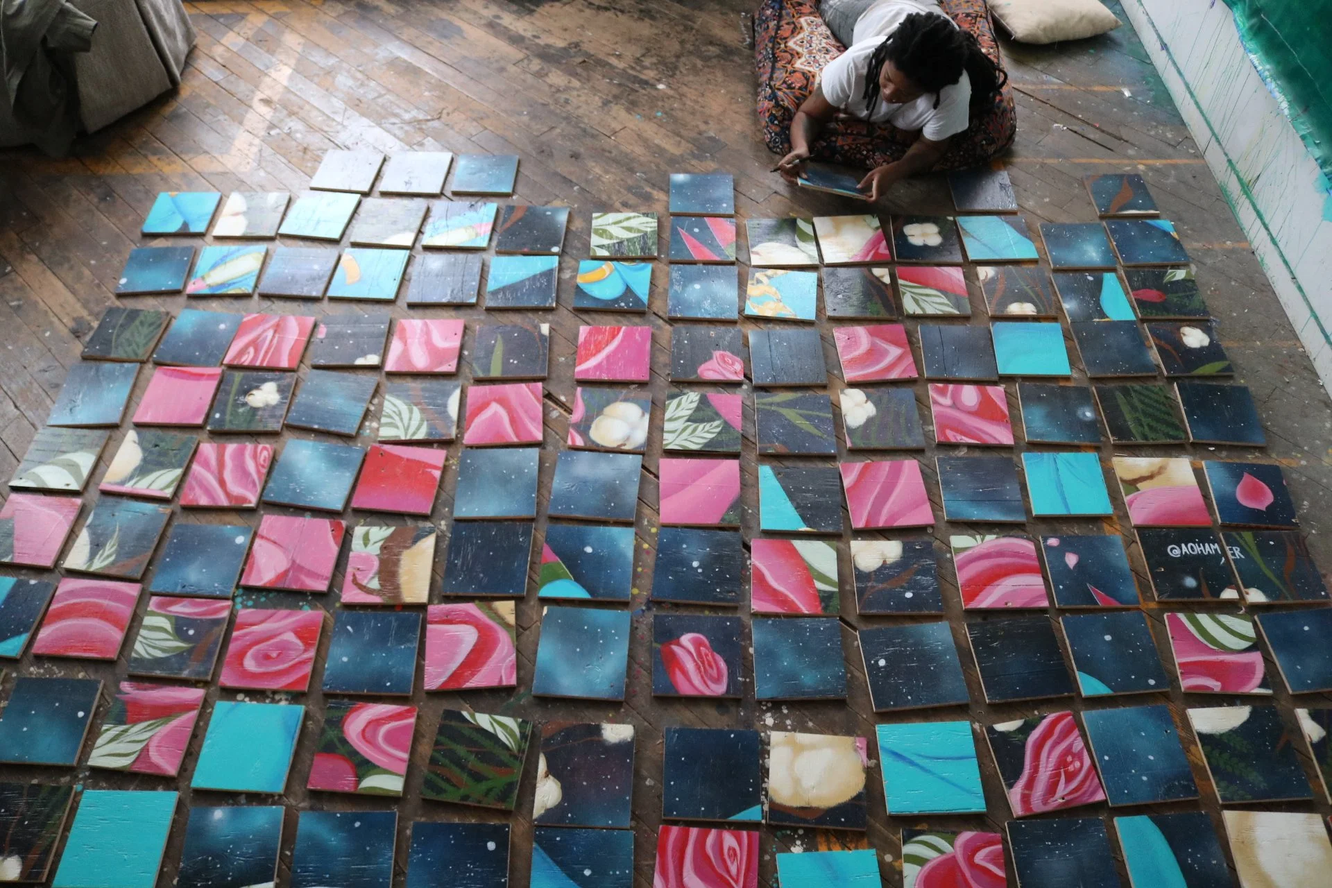 And so now I'm doing that, again, for my Patrons who are in my Supernova tier; and part of it for me as to why I cut up murals, really, it's about just sharing my work. The other aspect of it is if I don't have room for the pieces, as well as keeping it out of the landfills; because part of it is that if the venue doesn't want the painting anymore, or if it has to come down because it was a temporary installation, now it's like 'where does this piece go?'; instead of storing it in my studio space, it's like, Okay, here's a perfect opportunity to actually cut up these original pieces and give them to my collectors. So years in the future, people who've been rocking with me for a long time can be like, 'Yes, I still have a piece of that!' And I love hearing that from supporters who have been on the journey with me since 2016, and they actually still have this piece in their home - I'm truly, truly honored.