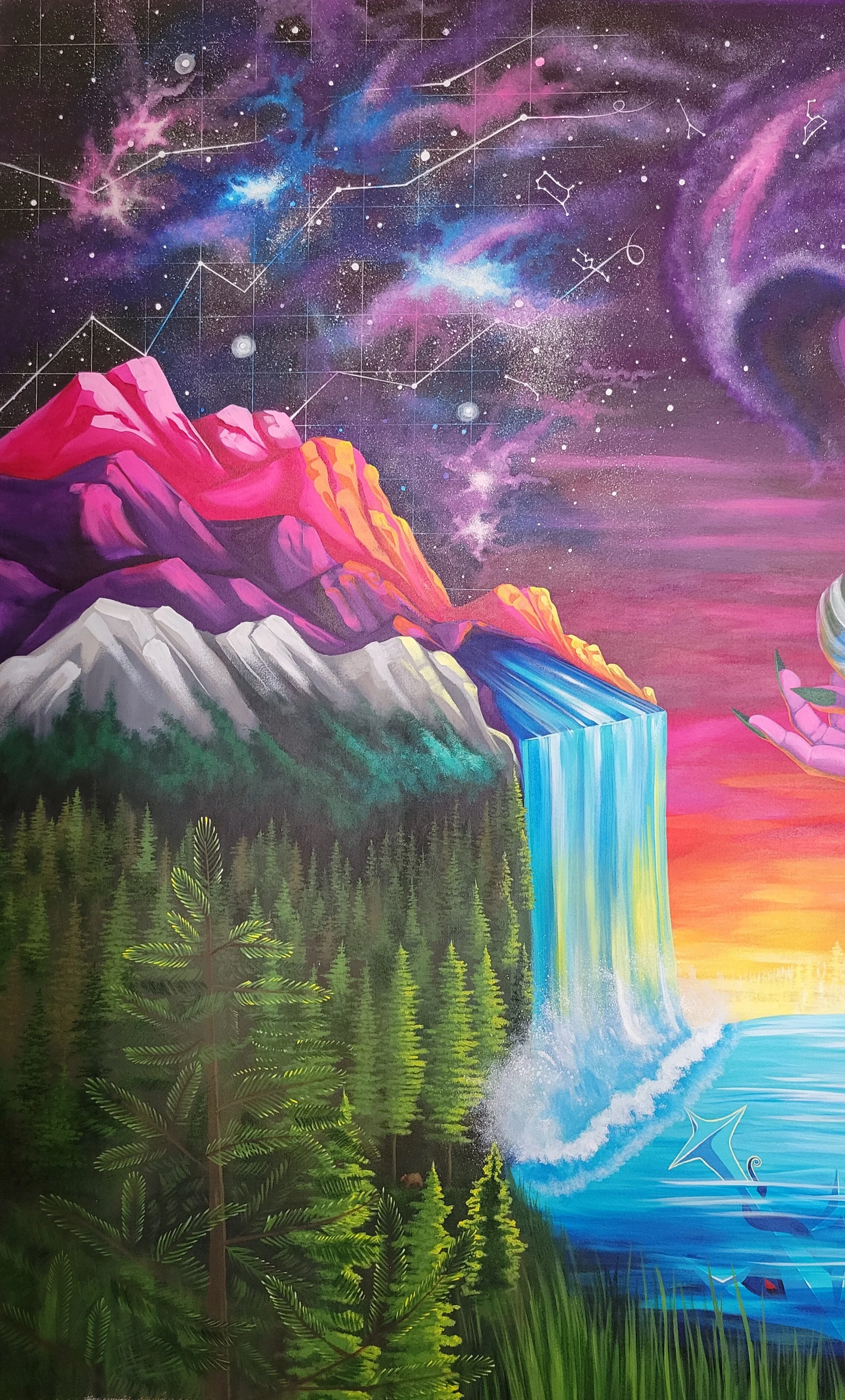 The mural is not a statement about the current state of the world, which we know often seems more dystopian than utopian. Instead, it shows the beauty of diversity, equity and inclusion, and how lifting each other up will elevate us all.