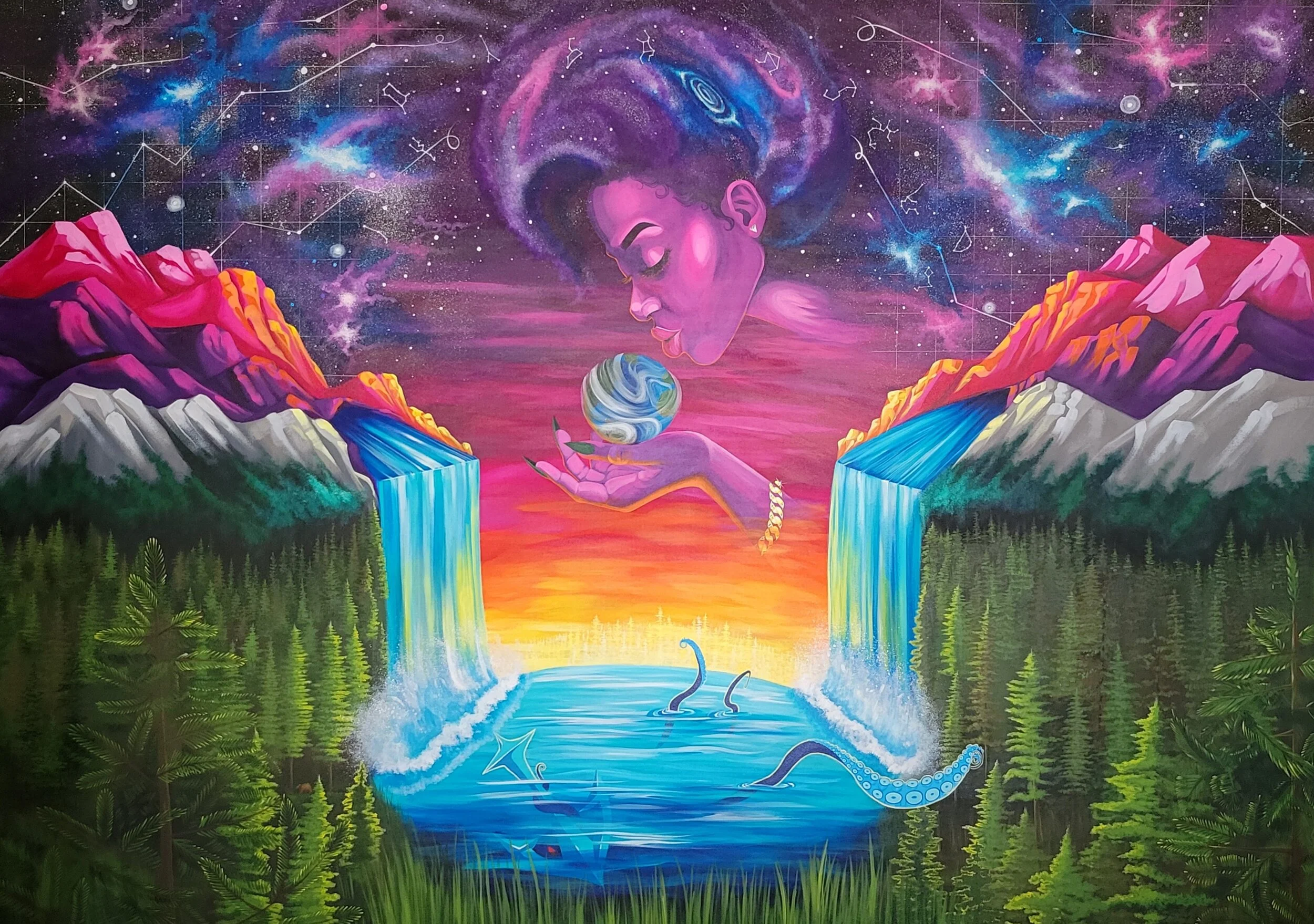 SYMETRA CLUB commissioned the creation of a mural that reflects the artist’s view of what it would look like if more people in the world had financial freedom. Think of a world with more equal access to healthcare, education, owning a home, starting a business, saving for retirement and the ability to build generational prosperity for their families and their communities. A world where the color of your skin, who you love, how you identify, where you came from and where you live do not determine how far you can go. The mural should express feelings of joy, confidence, hope, pride, inspiration, love, satisfaction, serenity and optimism.